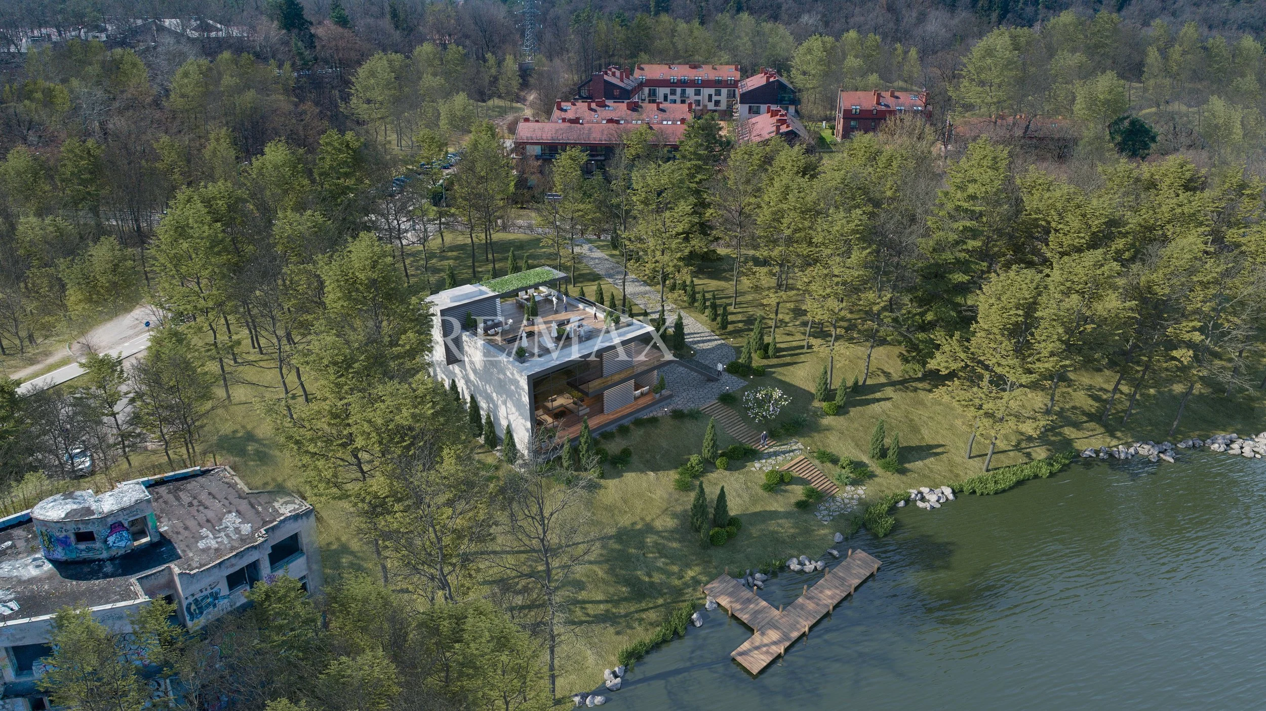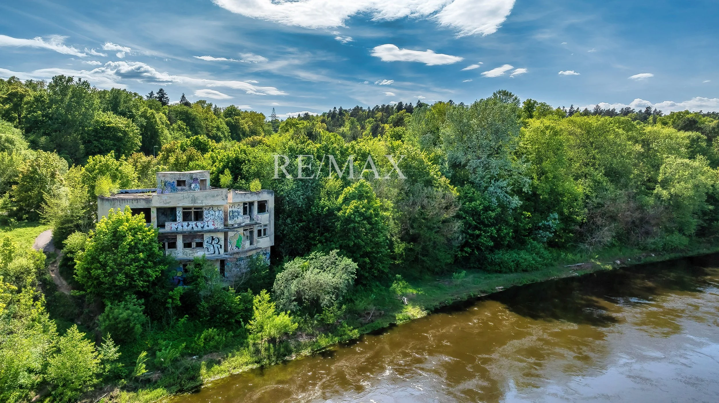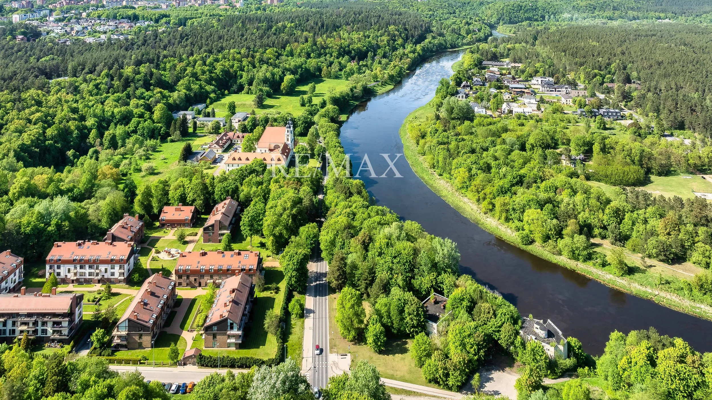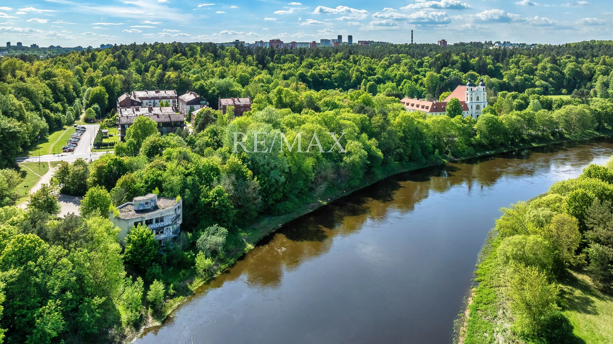 Didelis namas ant upės kranto