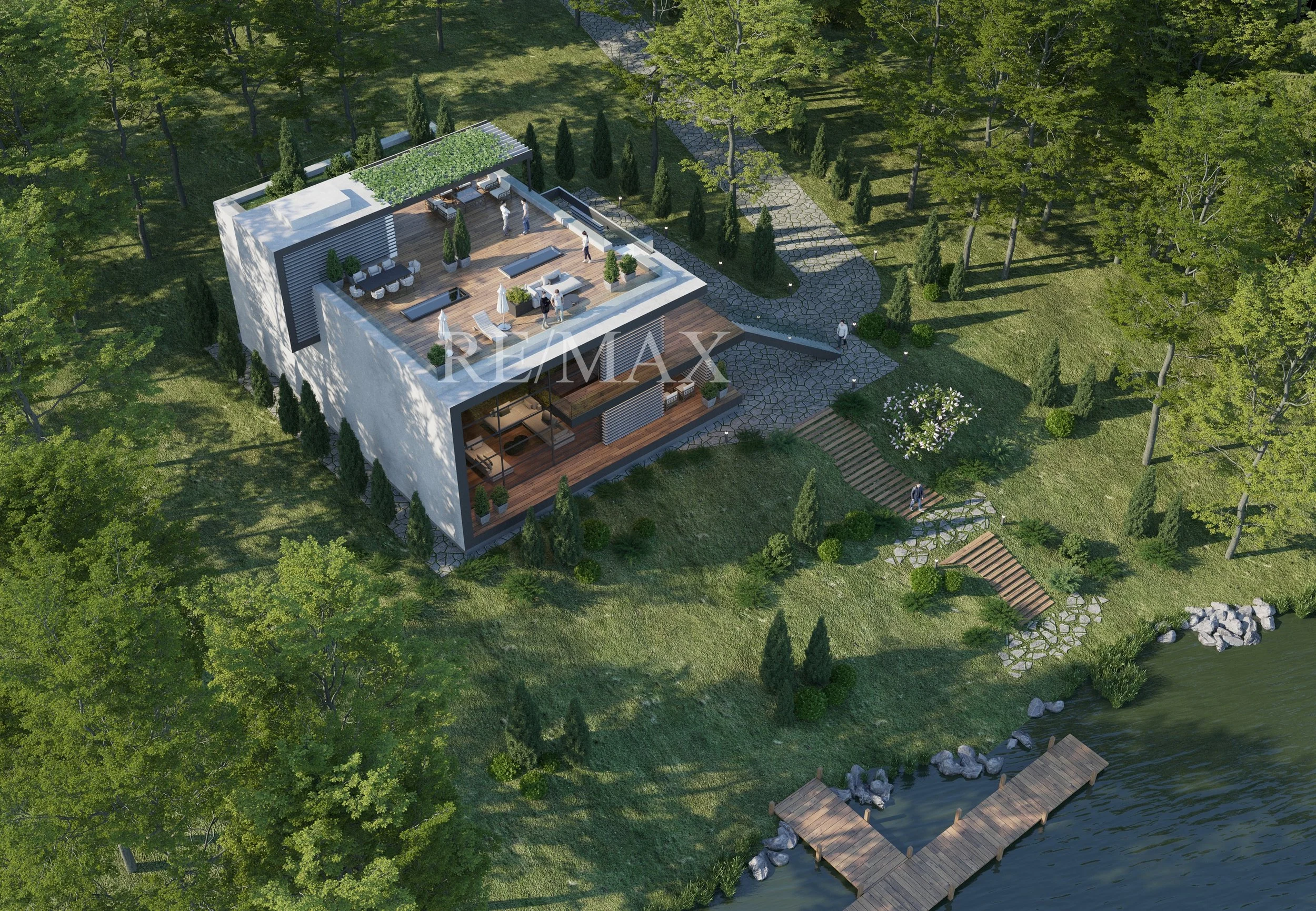 Pro vitrininius langus atsiveria panoraminiai upės ir kraštovaizdžio vaizdai, užtikrinantys natūralios šviesos gausą visuose namuose. Kruopščiai sutvarkytuose soduose su gyvybinga augmenija ir brandžiais medžiais sukuriama privati oazė, puikiai tinkanti poilsiui ir lauko pramogoms.
